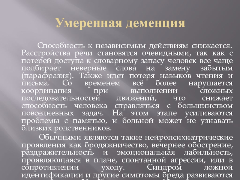 Слайд 9Умеренная деменция