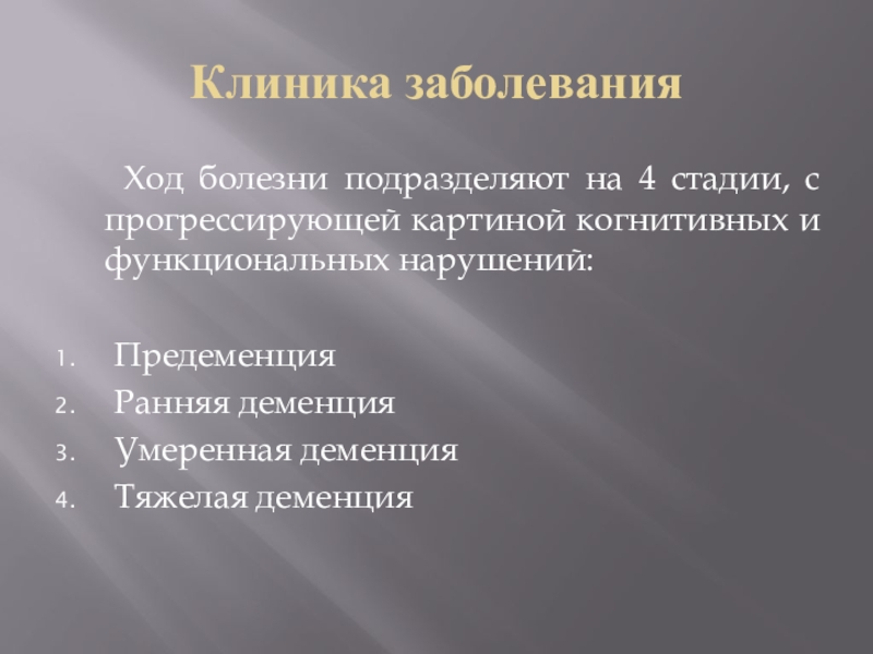 прогрессирующей картиной когнитивных и функциональных нарушений: