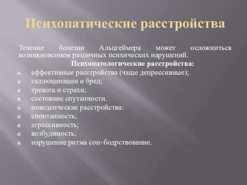 Течение болезни Альцгеймера может осложниться возникновением различных психических нарушений.