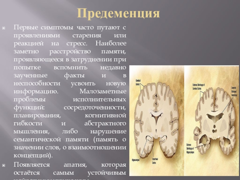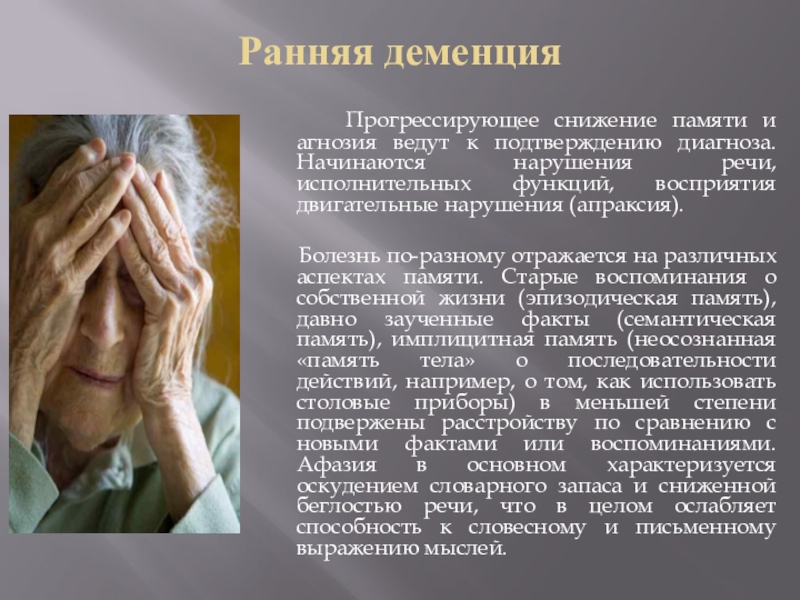 Слайд 8Ранняя деменция
