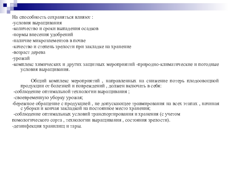 Общий комплекс мероприятий , направленных на снижение потерь плодоовощной продукции от болезней и повреждений , должен включать в себя: