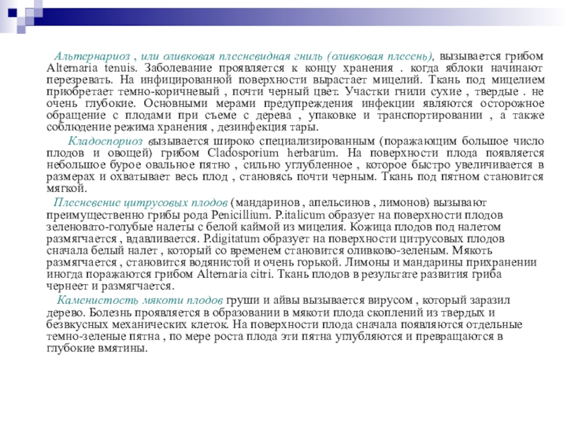 Слайд 44 Альтернариоз , или оливковая плесневидная гниль