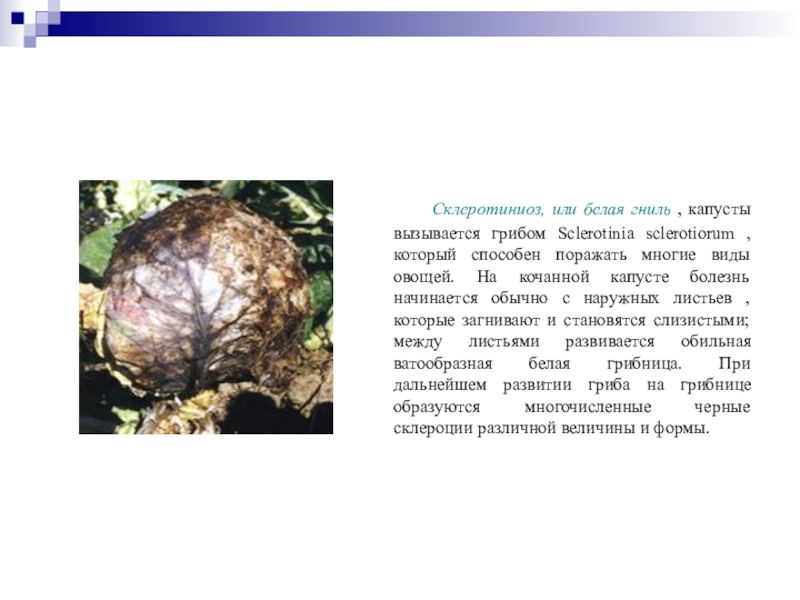 Слайд 32 Склеротиниоз, или белая гниль , капусты вызывается