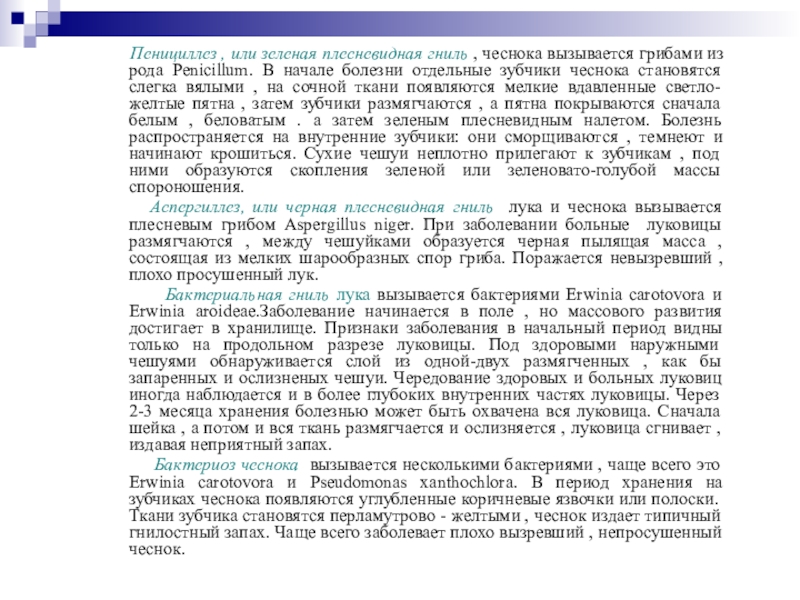 , чеснока вызывается грибами из рода Penicillum. В начале болезни