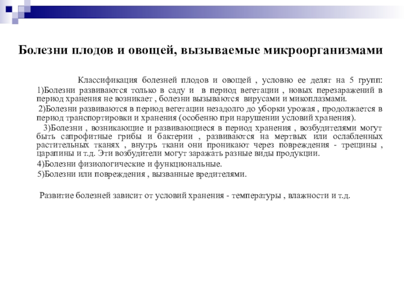 Классификация болезней плодов и овощей , условно ее делят на