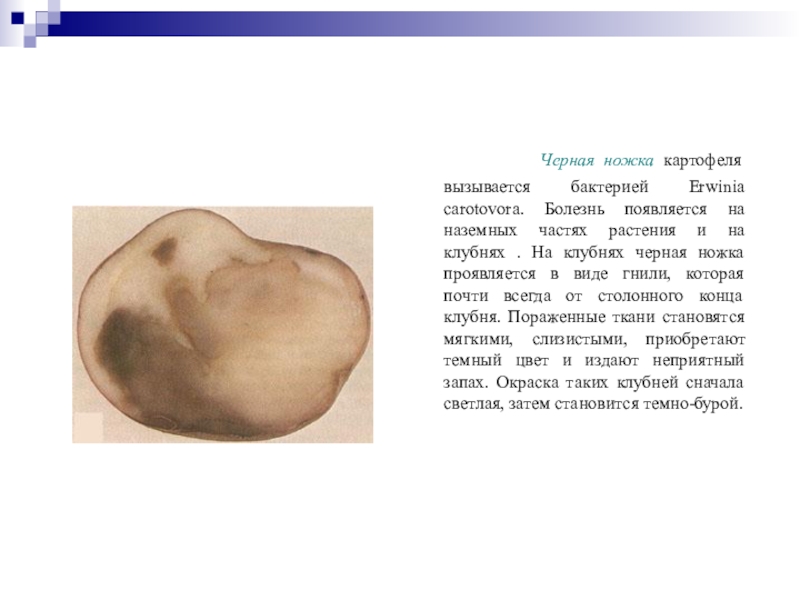 Слайд 19 Черная ножка картофеля вызывается бактерией Erwinia carotovora.