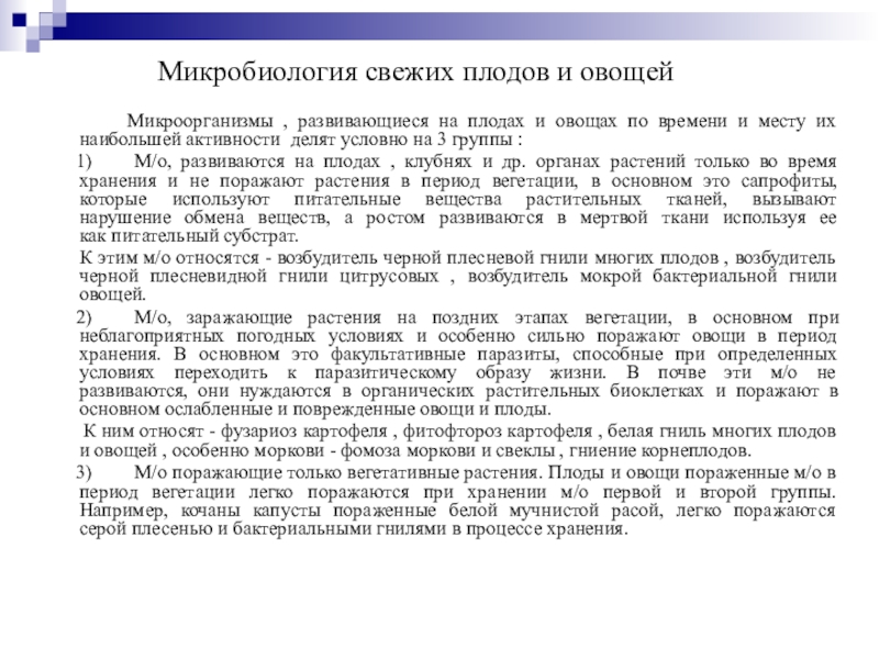 3) М/о поражающие только вегетативные растения. Плоды и овощи пораженные м/о в