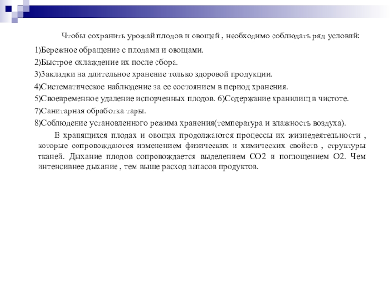 Слайд 45Условия хранения плодов и овощей