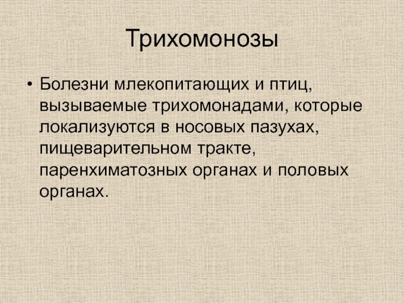 Болезни млекопитающих и птиц, вызываемые трихомонадами, которые локализуются в носовых
