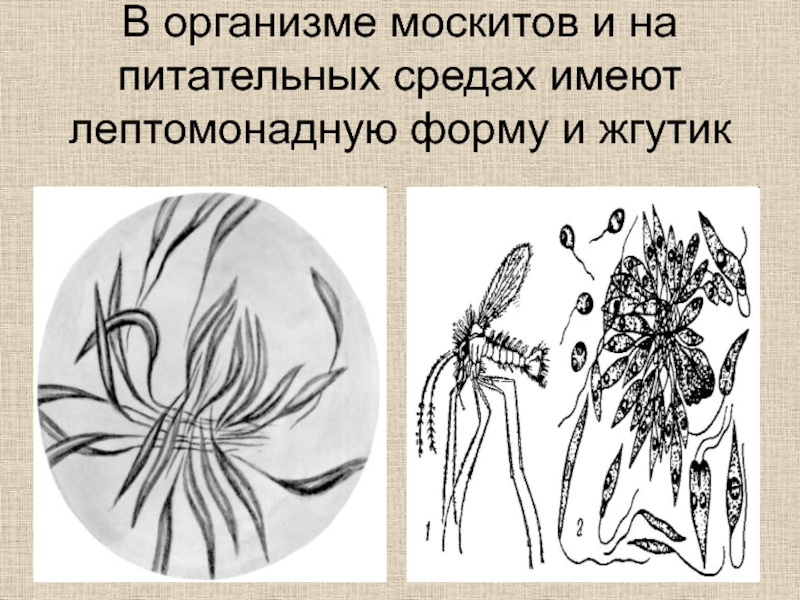 Слайд 50В организме москитов и на питательных средах имеют лептомонадную форму