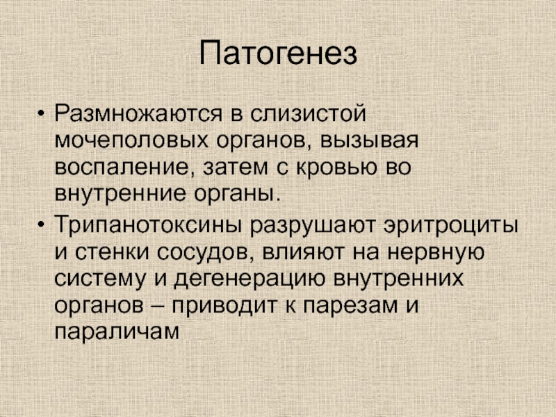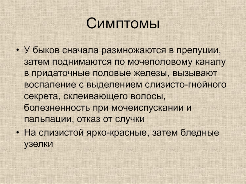 У быков размножаясь вызывают воспаление препуциального мешка, пениса, придаточных половых желез и семенников.