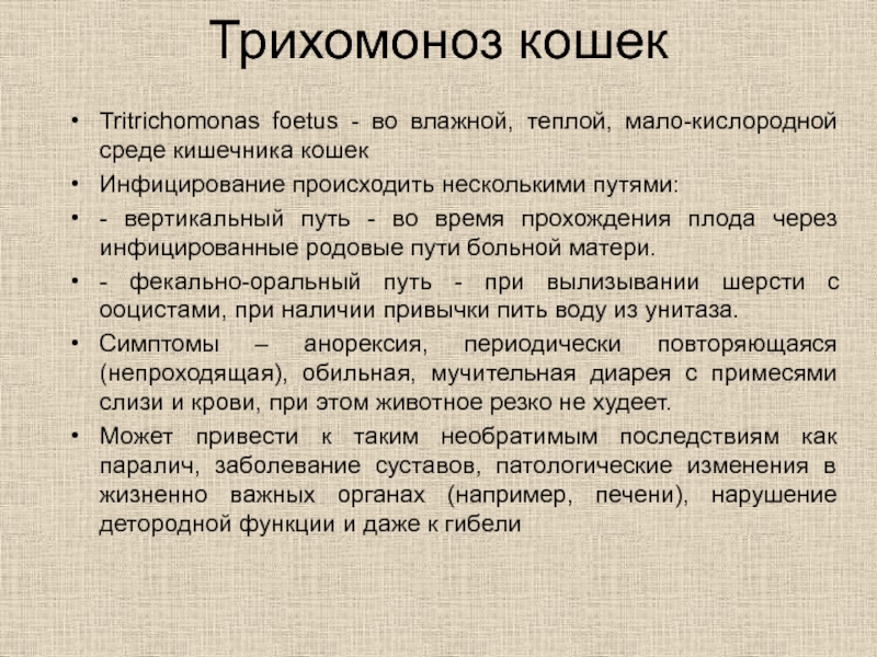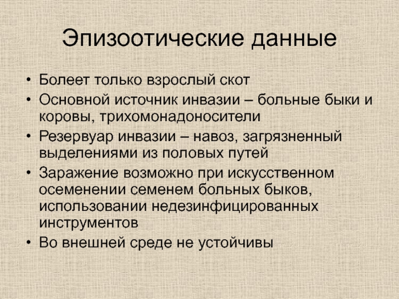 Резервуар инвазии – навоз, загрязненный выделениями из половых