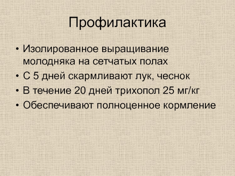 У взрослых птиц – хронически – понос, истощение, снижение продуктивности.