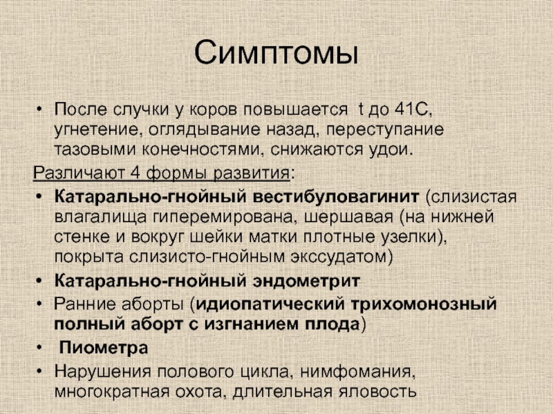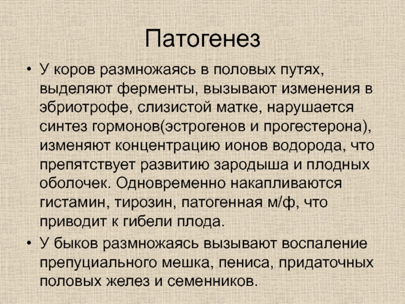 У коров размножаясь в половых путях, выделяют ферменты, вызывают изменения