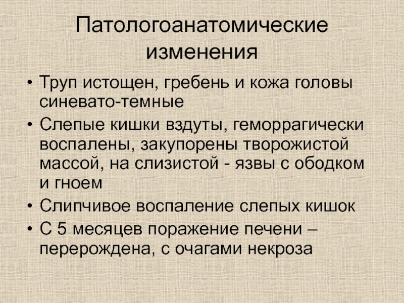 gallinarum, проявляющееся сонливостью, поносом, гнойно-катаральным воспалением слепых кишок и очаговым
