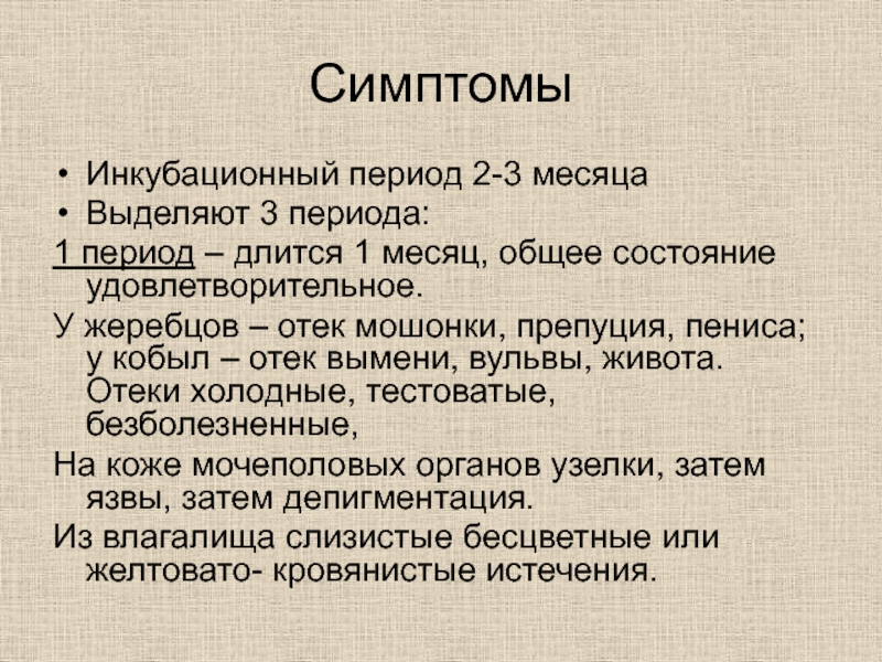 секрета, склеивающего волосы, болезненность при мочеиспускании и пальпации, отказ от случки