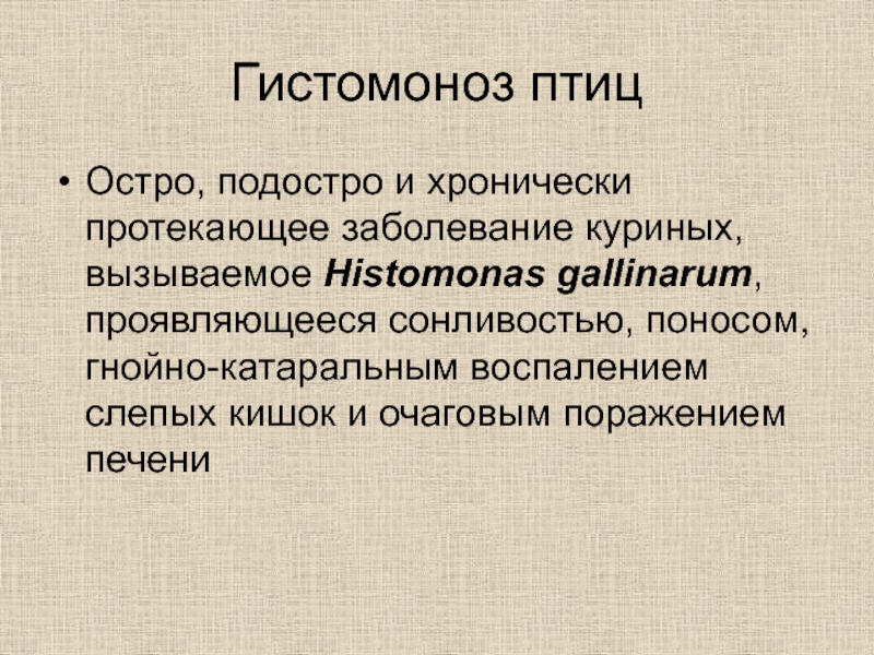 Остро, подостро и хронически протекающее заболевание куриных, вызываемое Histomonas