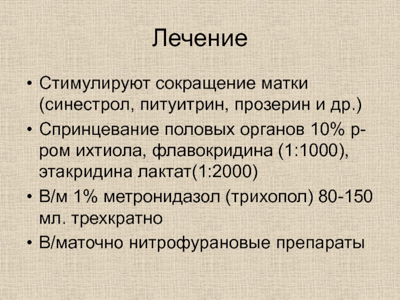 10% р-ром ихтиола, флавокридина (1:1000), этакридина лактат(1:2000)