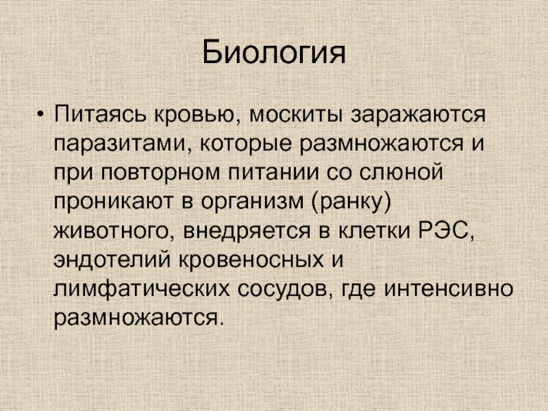 Питаясь кровью, москиты заражаются паразитами, которые размножаются и при повторном