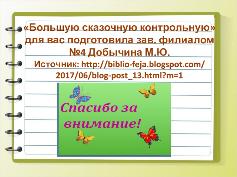«Большую сказочную контрольную» для вас подготовила зав. филиалом №4 Добычина М.Ю.