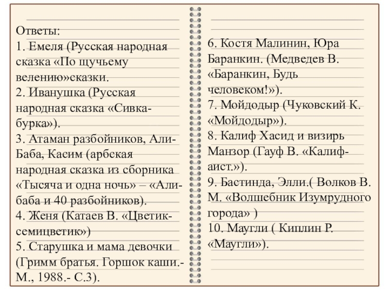 3. Атаман разбойников, Али-Баба, Касим (арбская народная сказка из сборника «Тысяча и одна ночь» – «Али-баба и 40 разбойников).