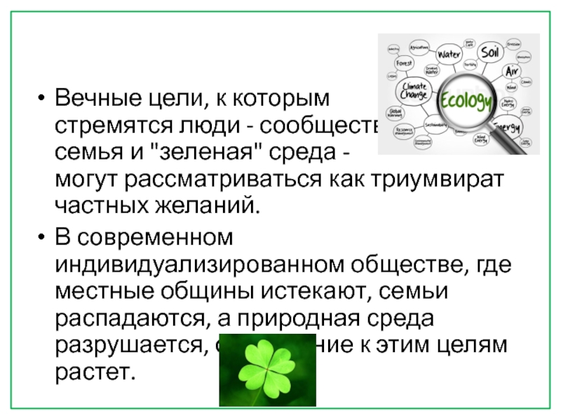 семья и "зеленая" среда - могут рассматриваться как триумвират частных желаний.