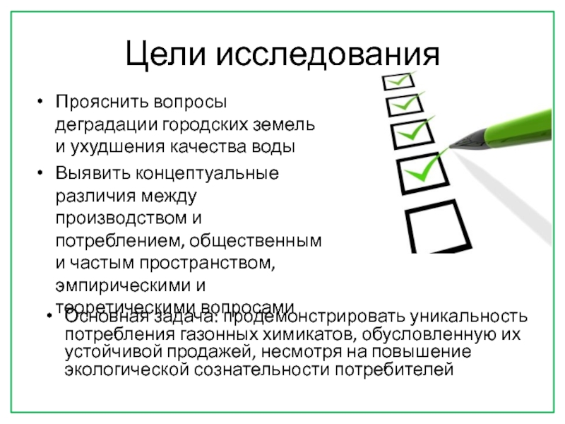 Основная задача: продемонстрировать уникальность потребления газонных химикатов, обусловленную их устойчивой продажей, несмотря на повышение экологической сознательности потребителей
