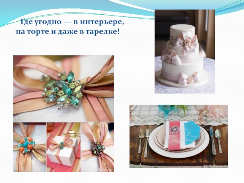 Слайд 13 Где угодно — в интерьере, на торте и