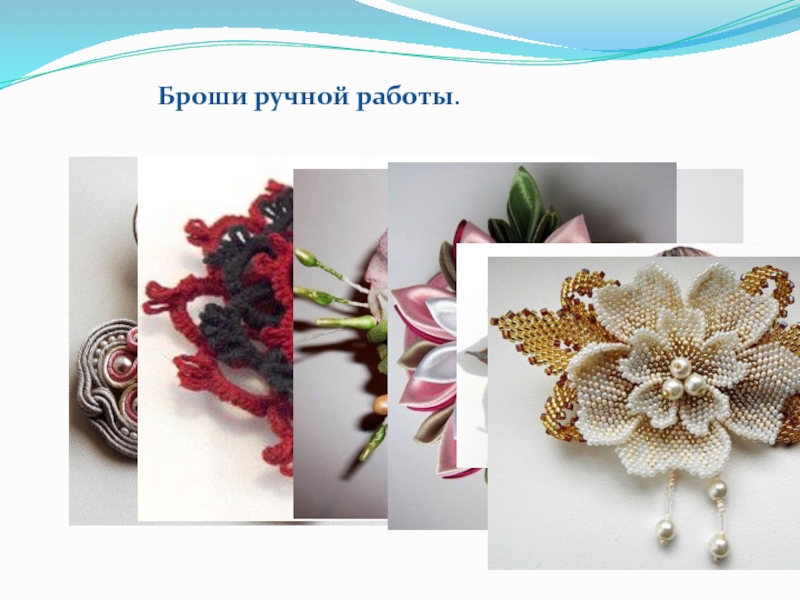 Слайд 6Броши ручной работы.