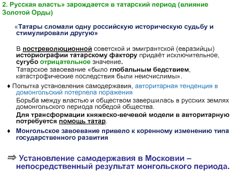 Слайд 172. Русская власть» зарождается в татарский период (влияние Золотой