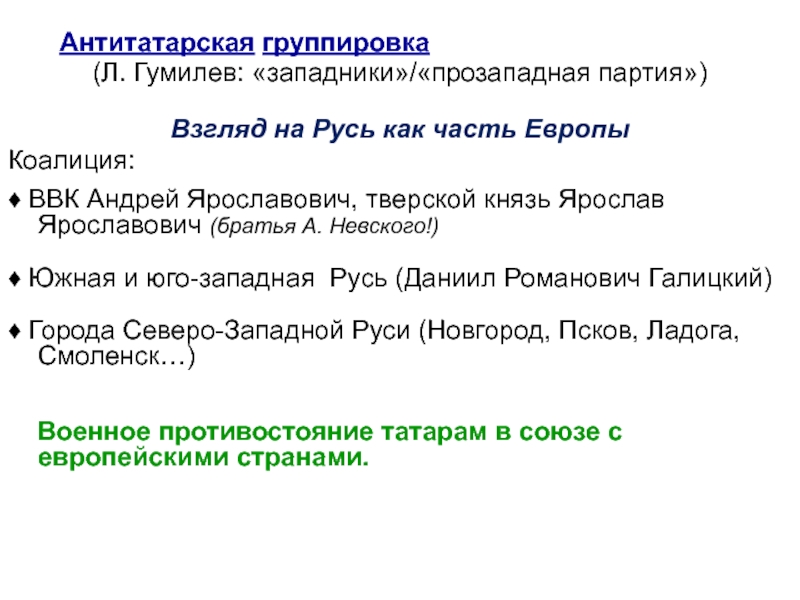 (Л. Гумилев: «западники»/«прозападная партия»)
