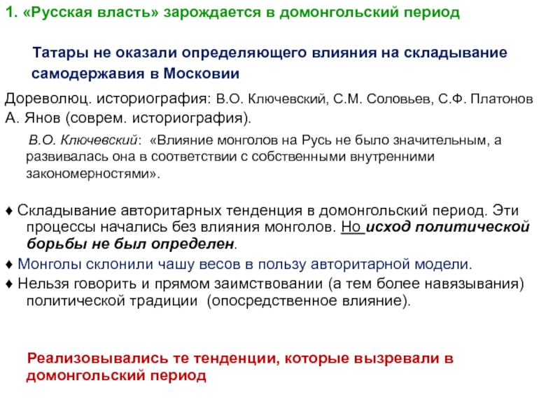 + Ю. Пивоваров, А. Фурсов объясняют происхождение «Русской власти» монгольским влиянием.