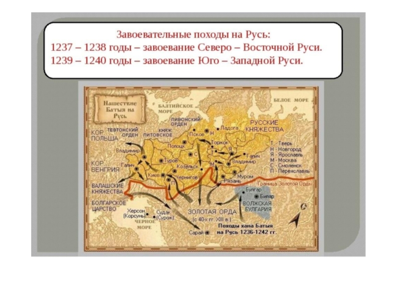 1270-е – 1280-е гг. 15 походов татар, из них три – нашествия, подвергнувшие разгрому значительную часть Северо-Восточной Руси.