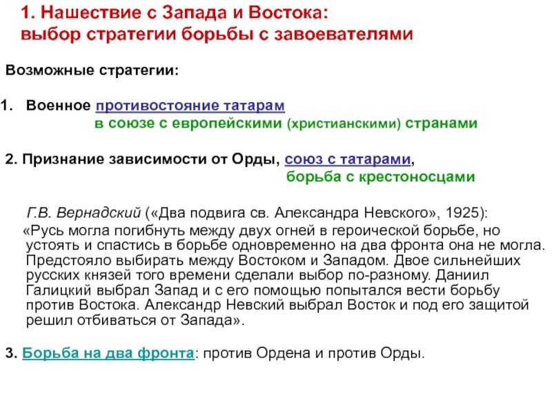 1. Нашествие с Запада и Востока: выбор стратегии борьбы