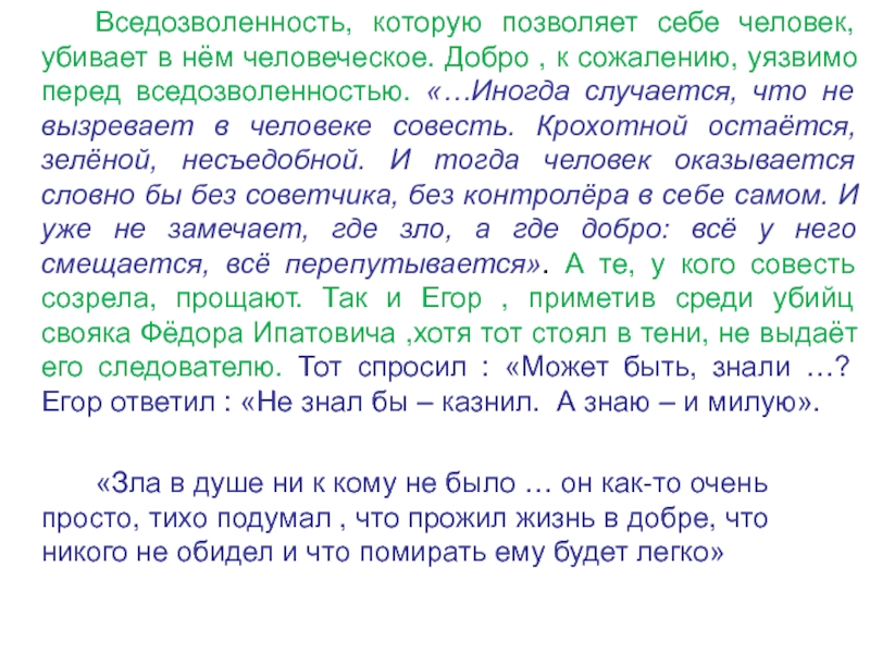 Слайд 6 Вседозволенность, которую позволяет себе человек, убивает в нём человеческое. Добро