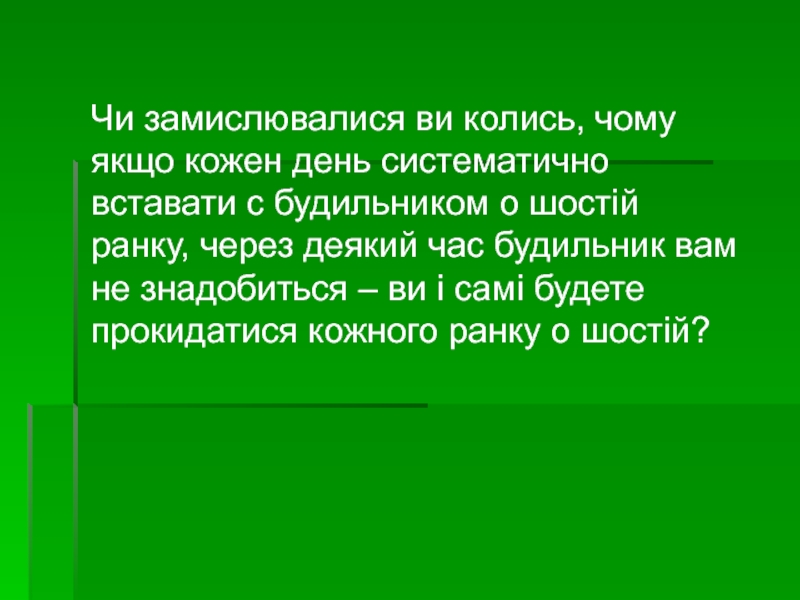 Чи замислювалися ви колись, чому якщо кожен день систематично вставати с будильником о шостій ранку, через деякий час будильник вам не знадобиться – ви і самі будете прокидатися кожного