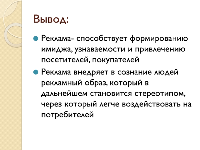 в сознание людей рекламный образ, который в дальнейшем становится стереотипом,