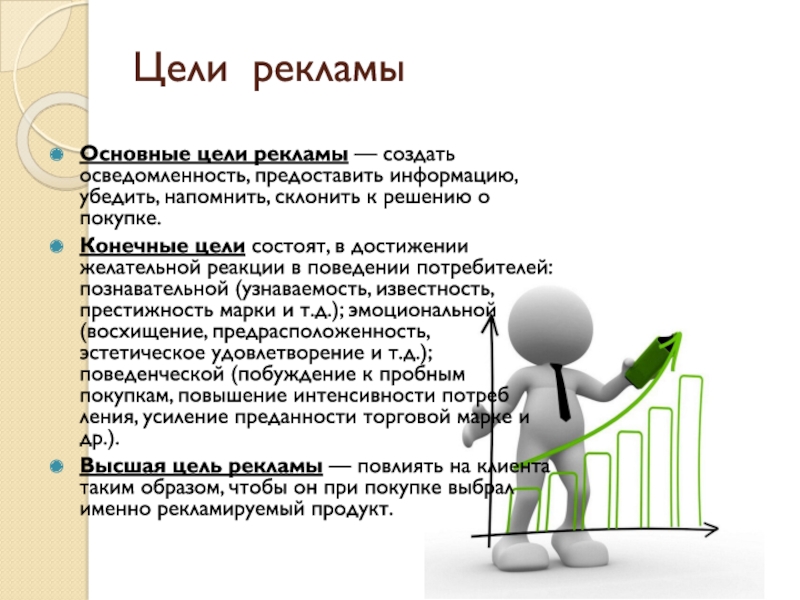 Высшая цель рекламы — повлиять на клиента таким образом, чтобы он при покупке выбрал именно рекламируемый продукт.