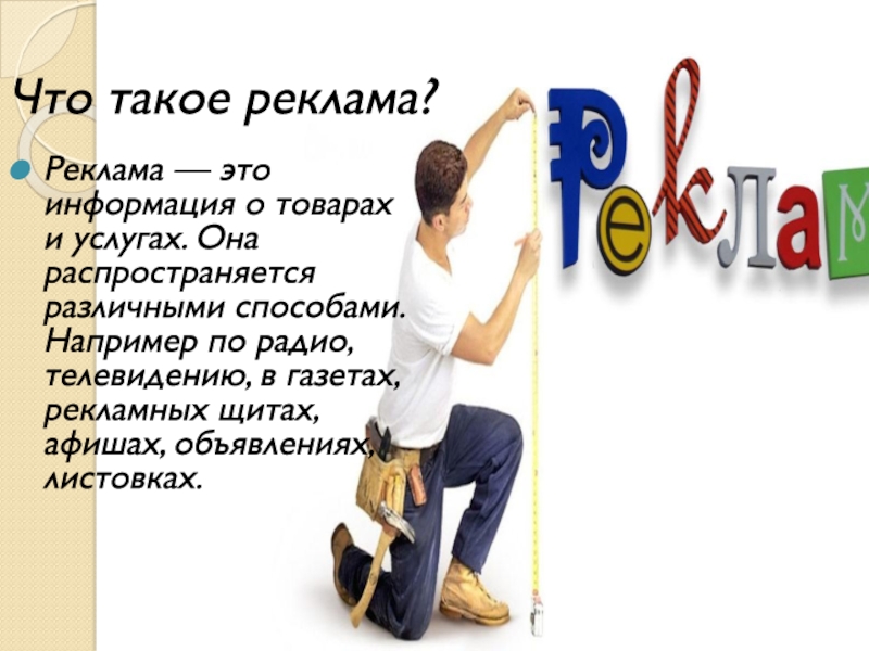 Задачи рекламы состоят в том, чтобы информировать о товарах и
