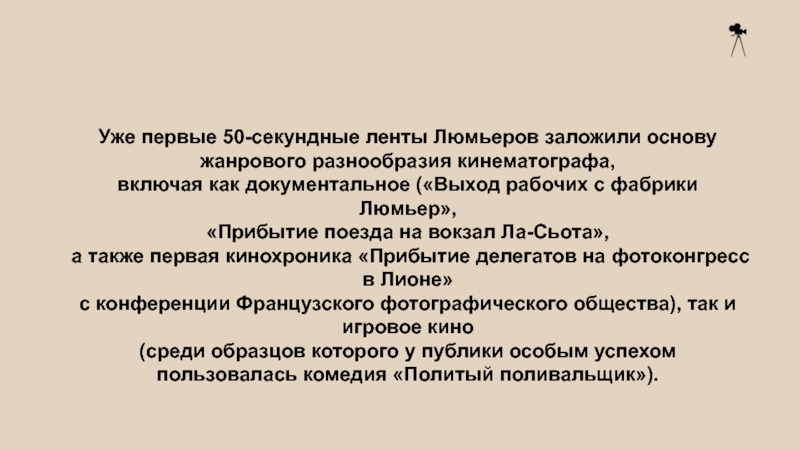 Слайд 6Уже первые 50-секундные ленты Люмьеров заложили основу