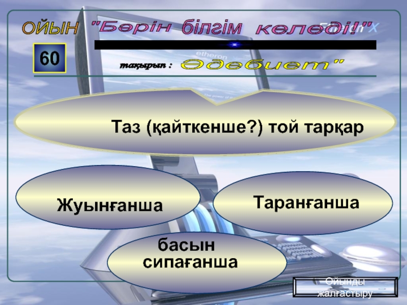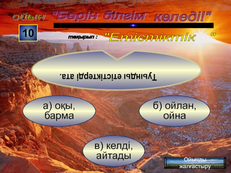 Өлеңді аяқта: Таулардан өзен ағар сарқыраған,Айнадай сәуле болып ... .