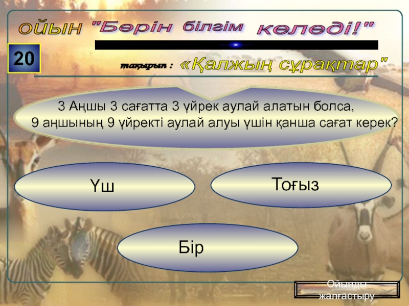 3 Аңшы 3 сағатта 3 үйрек аулай алатын болса,