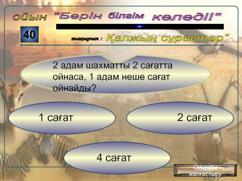 2 адам шахматты 2 сағатта ойнаса, 1 адам неше сағат ойнайды?
