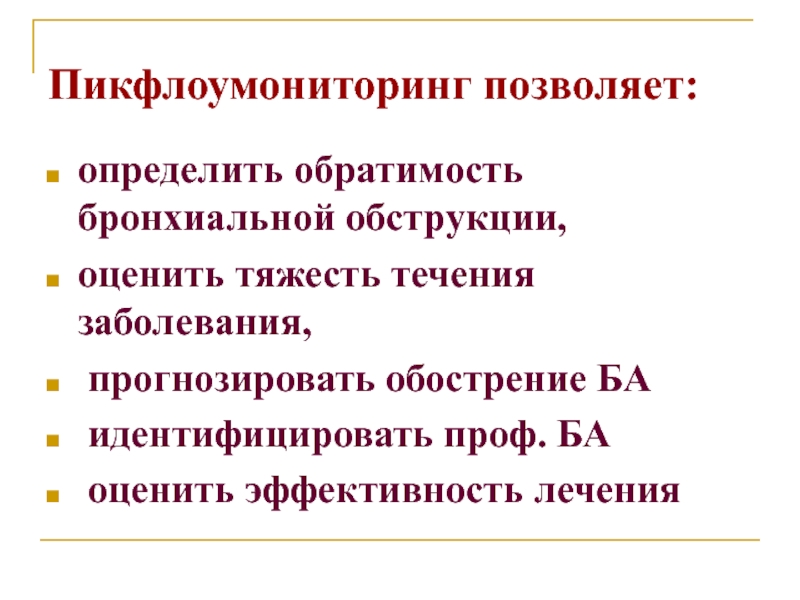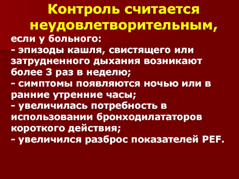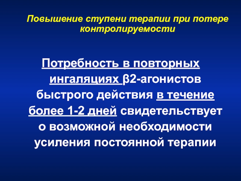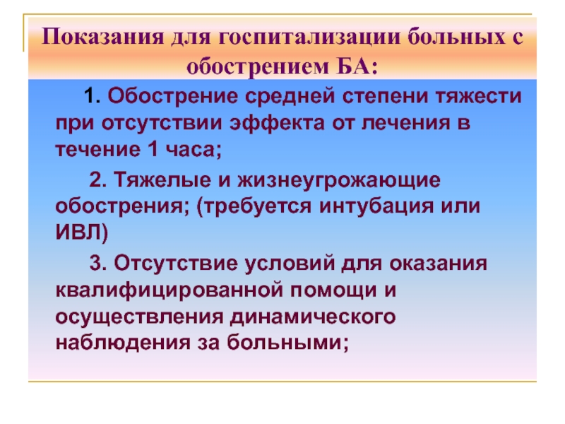 Слайд 104Показания для госпитализации больных с обострением БА: