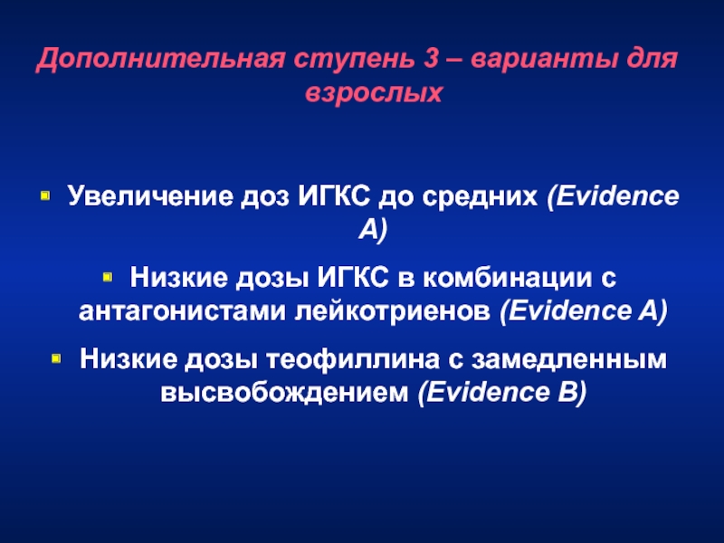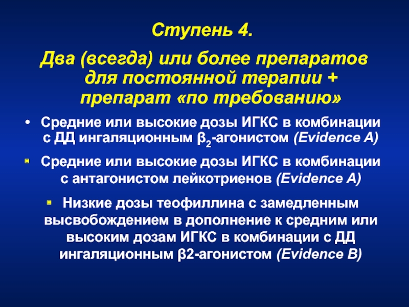БА и 90% атопической БА) при недостаточном эффекте от высоких доз ИГКС в сочетании с ДДБА или от СГКС. Уровень IqЕ в диапазоне 30-700 МЕ/мл. Возраст с 12 лет.