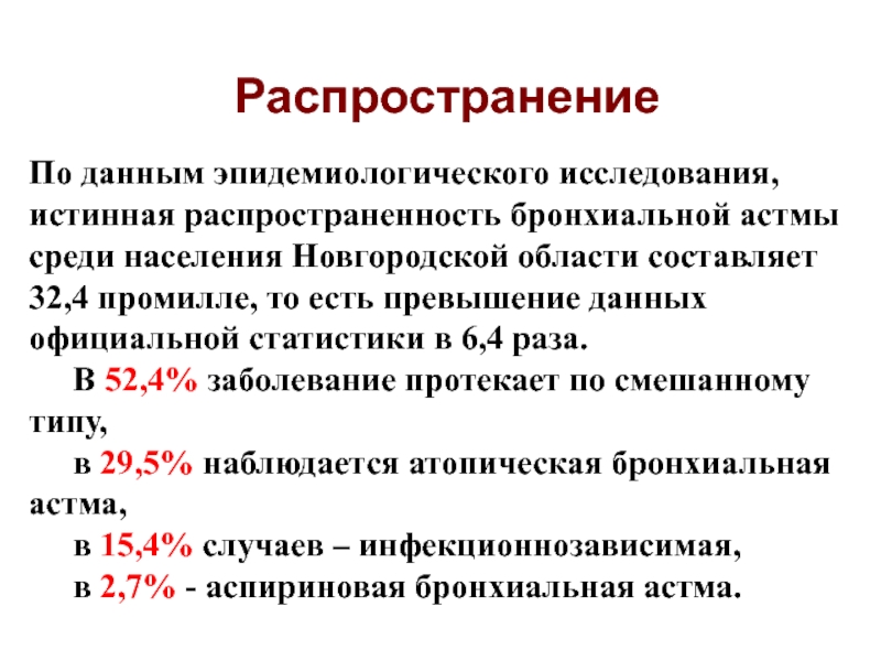 По данным эпидемиологического исследования, истинная распространенность бронхиальной астмы среди