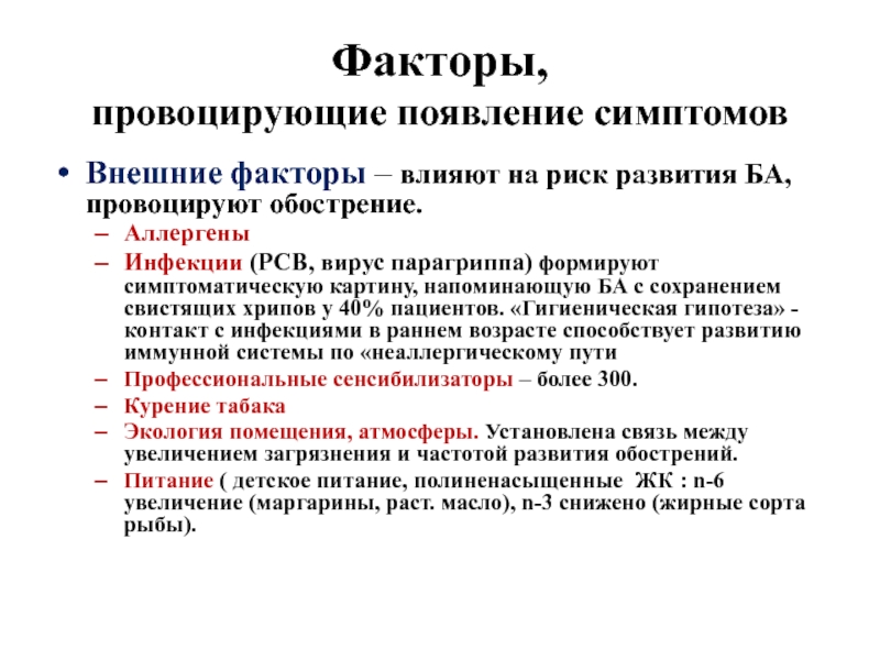 провоцирующие появление симптомов