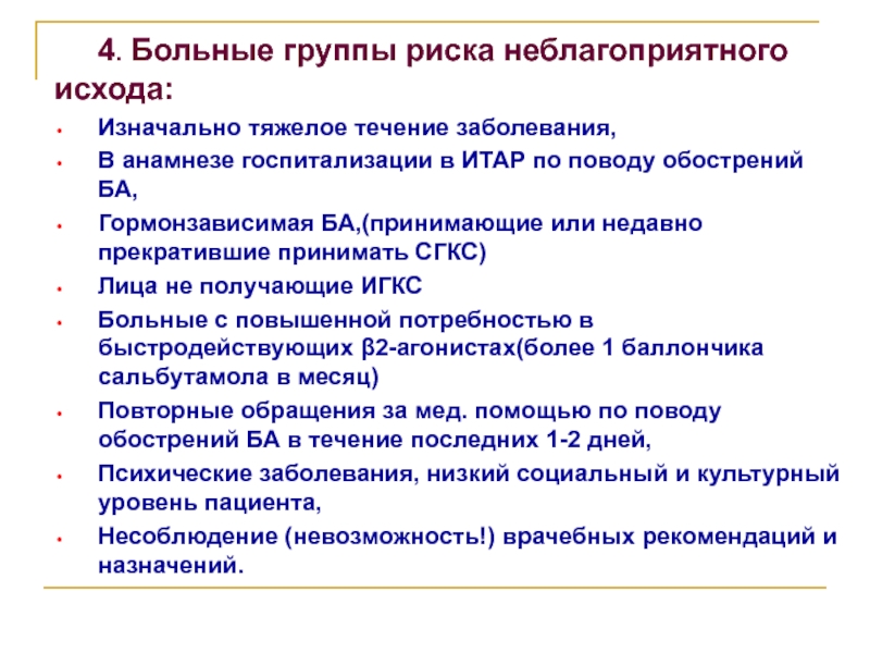 Слайд 1054. Больные группы риска неблагоприятного исхода: