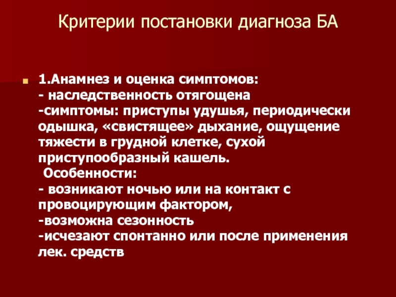 влияющие на развитие и проявления БА
