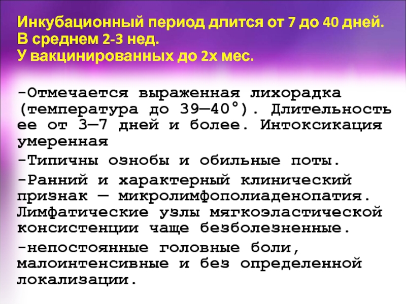 Слайд 27Инкубацонный период от 3 до 45 дней.